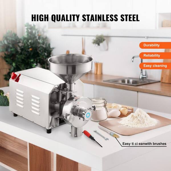 Soybean Grinder 2200-Watt Commercial Grinding Machine for Spices, Corn, and Grains, 50 kg/H Stainless Steel Flour Mill