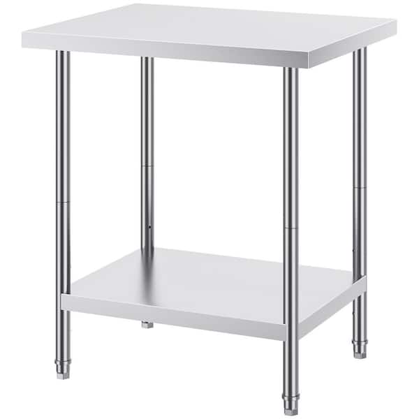 Stainless Steel Prep Table, 24 x 30 x 34 in., 700 lbs. Capacity, Heavy Duty Kitchen Prep Table with 3 Adjustable Heights