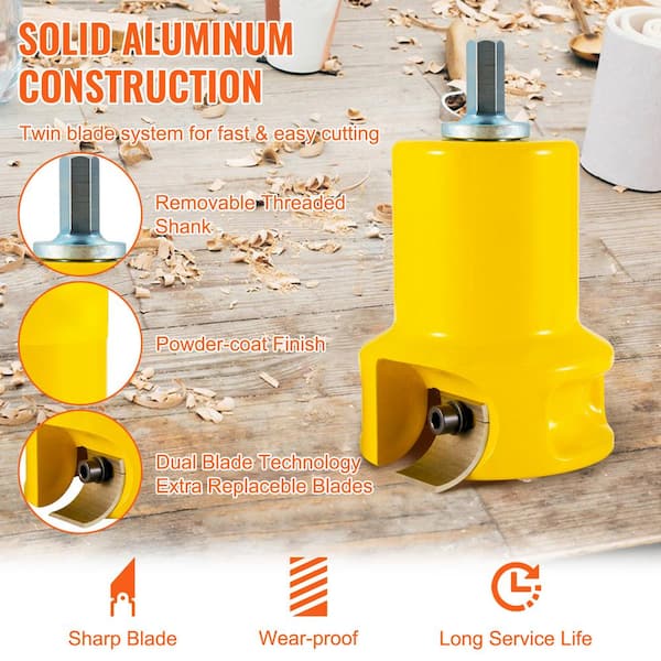 Tenon Cutter, 1 in./25.4mm, 1.5 in./38mm, and 2 in./50.8mm, Aluminum and Steel Log Furniture Cutter, Dual Curved Blades