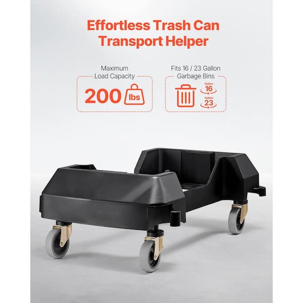 Trash Can Dolly, Fits 16/23 Gal. Containers, Heavy Duty Barrel Dolly with 4 Lockable Wheels, 200 lbs., Slim Roller Base