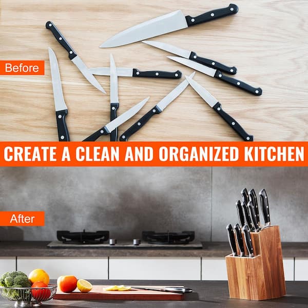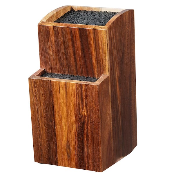 Universal Knife Holder 2-Knife Storage Stand Wood Knife Block with PP Brush Wooden Knife Organizer