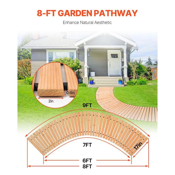Wooden Garden Pathway 8 ft. L x 0.59 in. H x 16.93 in. W, Non-Slip Curved Walkway Wire Rope Connection Brown Edging