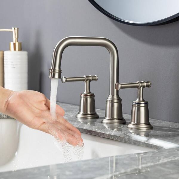 SWAN 8 in. Widespread Double Handle Bathroom Sink Faucet with Drain Assembly in Brushed Nickel