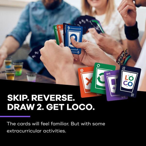 DUNZO - Drinking Version of Classic Card Game with 4 Unbreakable Shot Glasses - Draw 2, Skip, Reverse, Get Loco