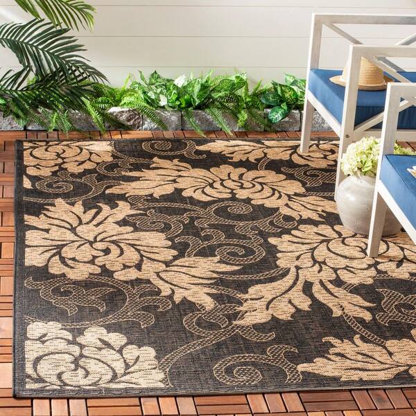 Courtyard Black/Natural 7 ft. x 10 ft. Border Indoor/Outdoor Area Rug