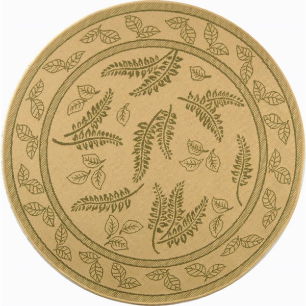 Courtyard Natural/Olive 7 ft. x 7 ft. Round Border Indoor/Outdoor Area Rug