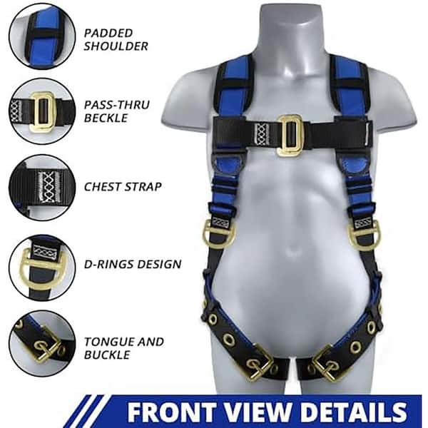 Safety Harness Fall Protection Climbing Roofing Belt Padded D-Ring Grommet Legs Meets OSHA ANSI Standards