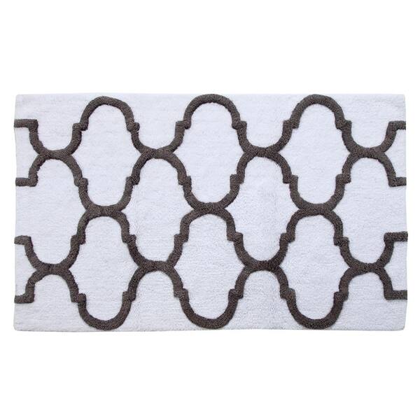 34 in. x 21 in. Cotton Bath Rug in White/ Gray