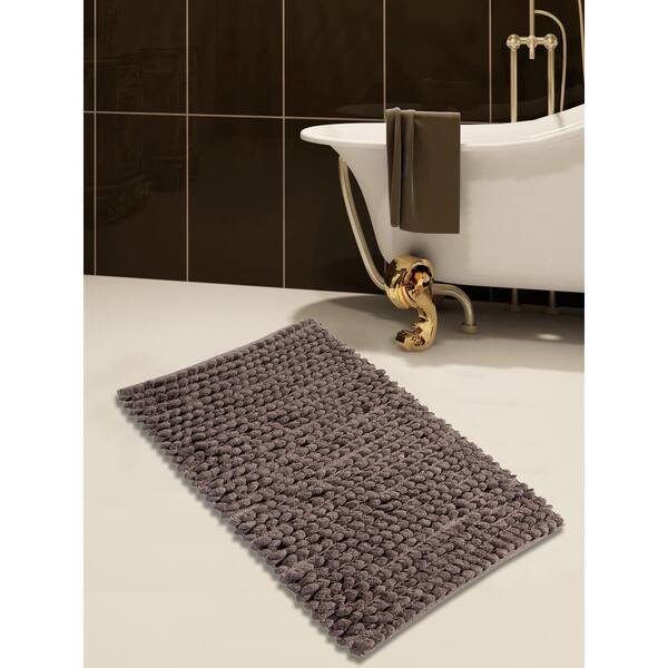 Bubbles Pattern 34 in. x 21 in. in Cotton and Microfiber Gray Latex Spray Non-Skid Backing Bath Rug