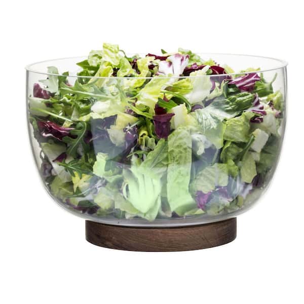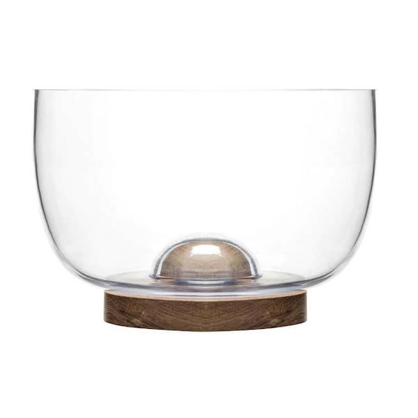 Nature 8 5/8 in. 4 Cup Glass Salad Bowl with Oak Trivet, Clear