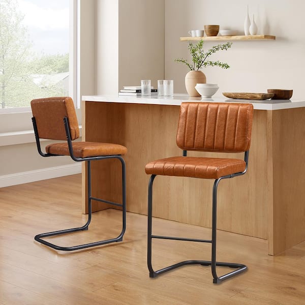 Saisy 26.77 in. Seat Height Brown Faux Leather Counter Stools with Metal Frame, (Set of 2)