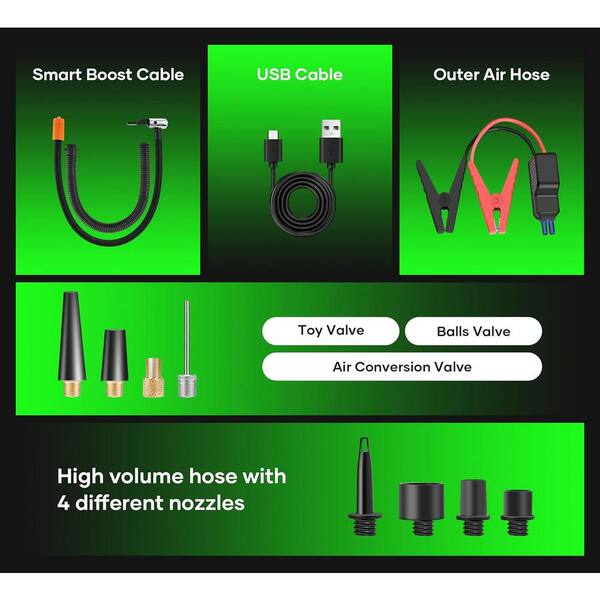 Jump Starters-Tire Inflator Portable Air Compressor1500A Battery Pack:10400mah Portable 15-Volt Jump Box with LED Light
