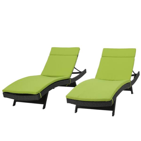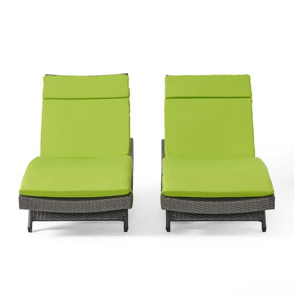 Salem Grey 4-Piece Faux Rattan Outdoor Patio Chaise Lounge with Green Cushions