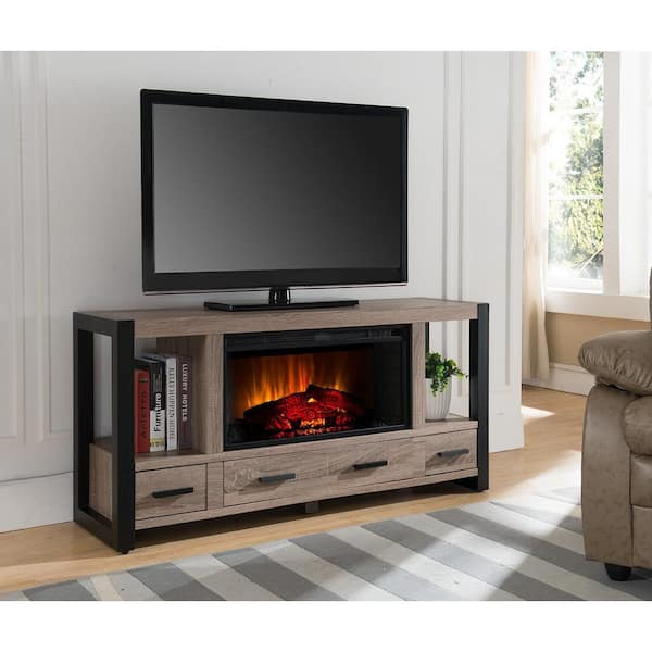 Salictus 54 in. Electric Fireplace TV Stand in Weathered Light Oak