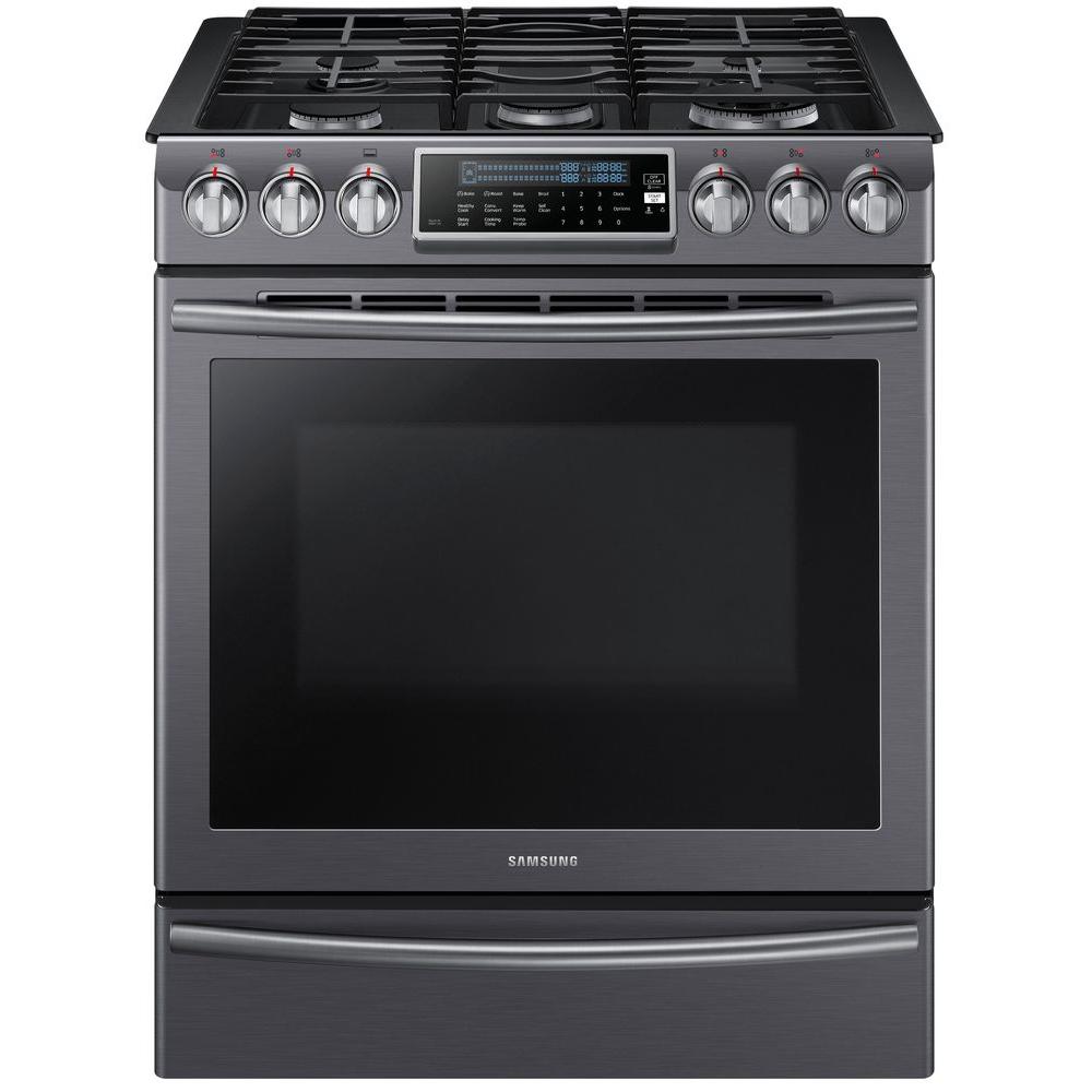 Samsung's new gas slide-in range creates a custom, built-in look that blends in with your cabinetry. Its large capacity 5.8 cu. ft. interior lets you prepare large roasts and multiple dishes at once. Flexible Cooktop features burners of multiple shapes and sizes to accommodate any pot or pan.