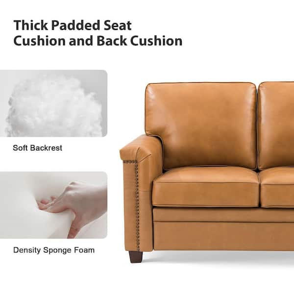 Samuel 56 in. Wide Camel Leather Rectangle 2-Seat Sofa with Solid Wooden Legs