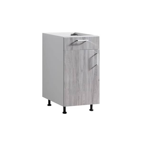 San Juan Vintage Brown PVC Slab Door Stock Assembled Right Base Kitchen Cabinet with Soft-Close Door 18 in. W x 24 in. D