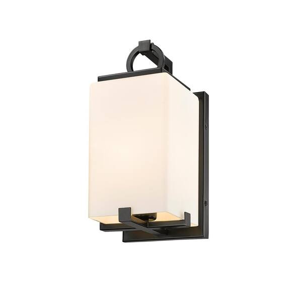 Sana 5.75 in. 1-Light Outdoor Coach Wall Sconce Black with White Opal Glass Shade