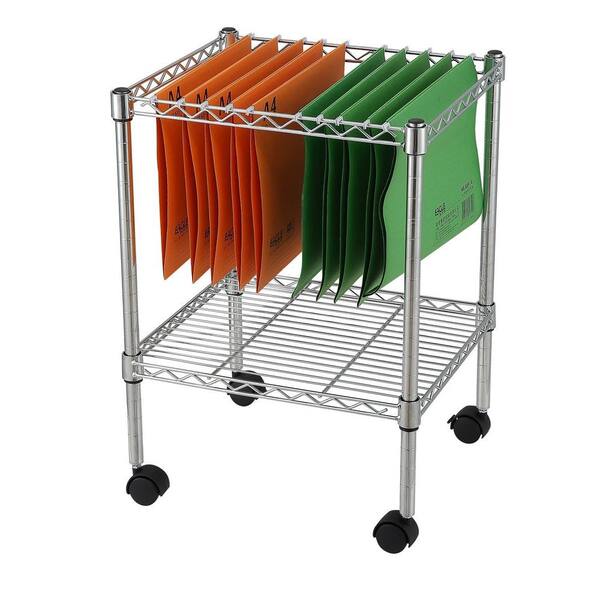 24 in. W x 14 in. D x 22 in. H Single-Tier Steel Rolling File Cart in Chrome