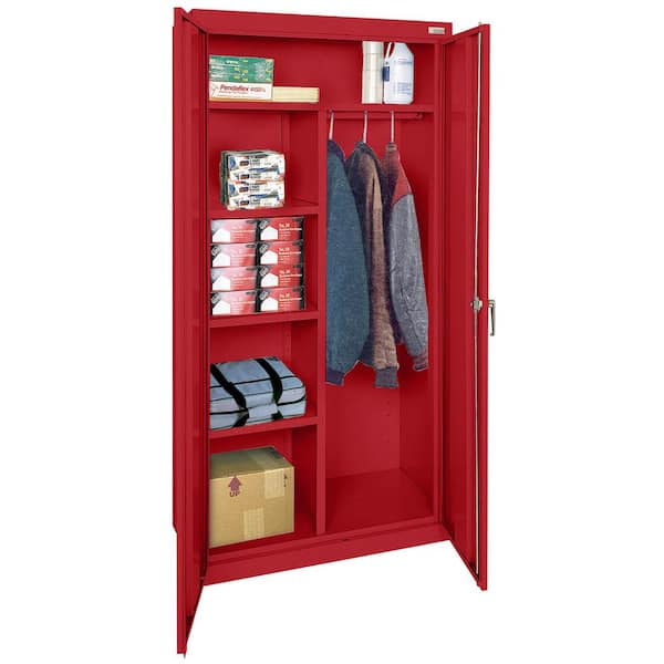 Classic Series Steel Combination Freestanding Cabinet with Adjustable Shelves in Red (36 in. W x 72 in. H x 24 in. D)