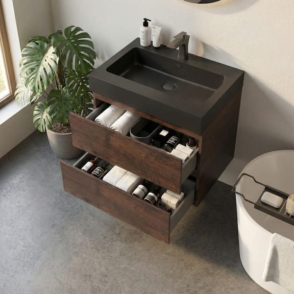 Alice 24.00 in. W x 18.10 in. D x 25.20 in. H Wall Mounting Bath Vanity in Rose Wood with Single Black Top