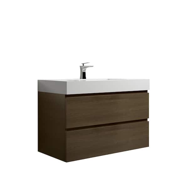 Alice 36.00 in. W x 18.10 in. D x 25.20 in. H Single Sink Floating Bath Vanity in Oak Wood with White Top