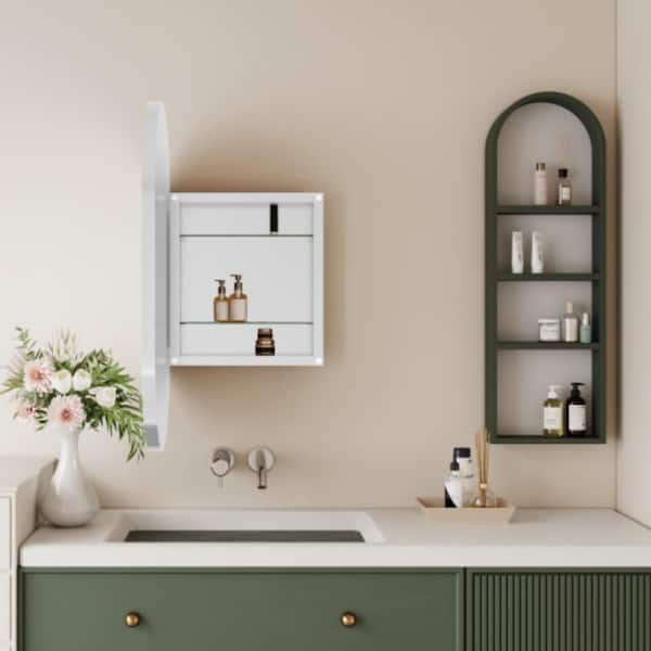 FS 20 in. W x 34 in. H Round White Metal Medicine Cabinet with Mirror