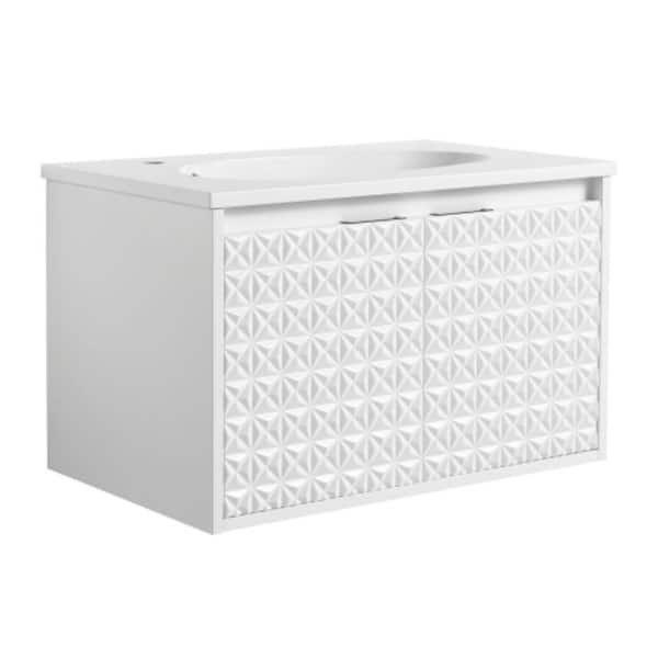 GLEM03 30.00 in. W x 18.20 in. D x 18.50 in. H Single Sink Floating Bath Vanity in White with White Solid Surface Top