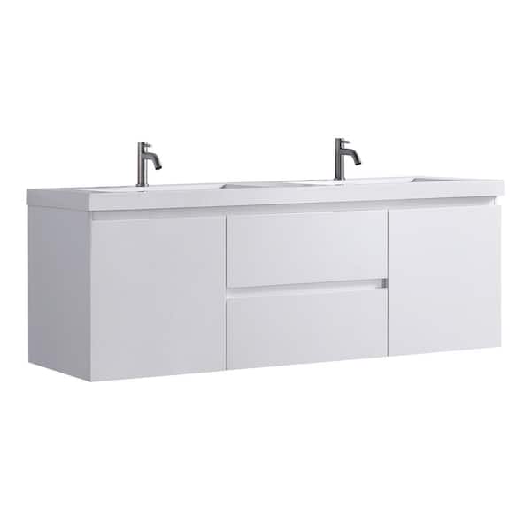 Hood-1D 60.00 in. W x 19.70 in. D x 22.00 in. H Wall Mounting Bath Vanity in White Wood with White Solid Surface Top