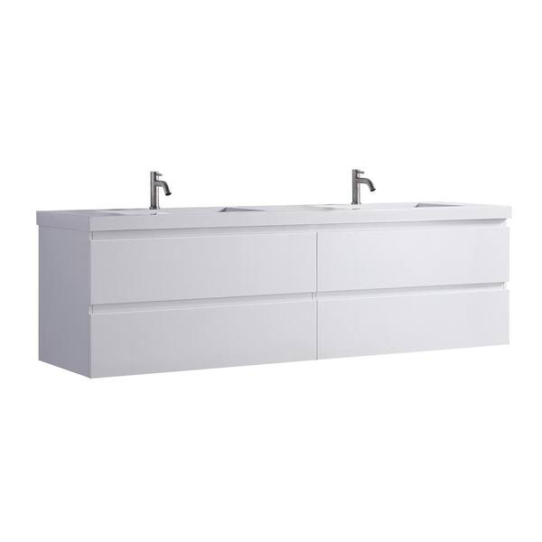 Hood-1D 72.00 in. W x 19.70 in. D x 22.00 in. H Wall Mounting Bath Vanity in White Wood with White Solid Surface Top