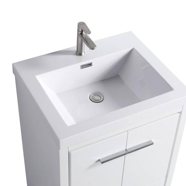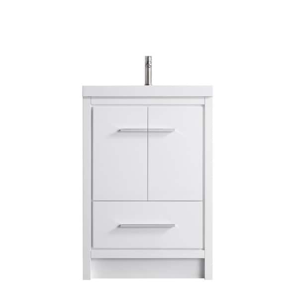Hood-2 24.00 in. W x 19.70 in. D x 35.00 in. H Freestanding Bath Vanity in White Wood with White Solid Surface Top