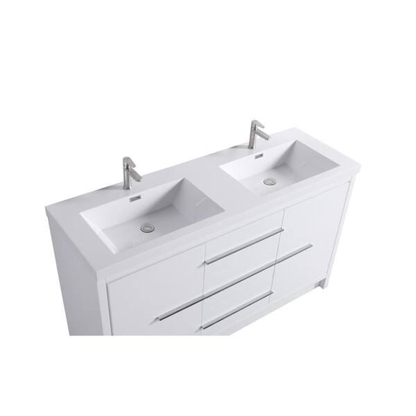 Hood-2D 60.00 in. W x 19.70 in. D x 35.00 in. H Freestanding Bath Vanity in White Wood with White Solid Surface Top