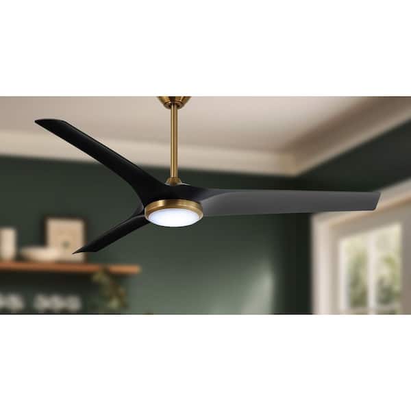 Sansra 60 in. Indoor/Outdoor Brass Standard Ceiling Fan with with CCT Integrated LED Module with Remote and Black Blades