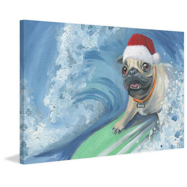 "Santa Catching The Wave" By Marmont Hill Unframed Canvas Animal Art Print 20 in. x 30 in.