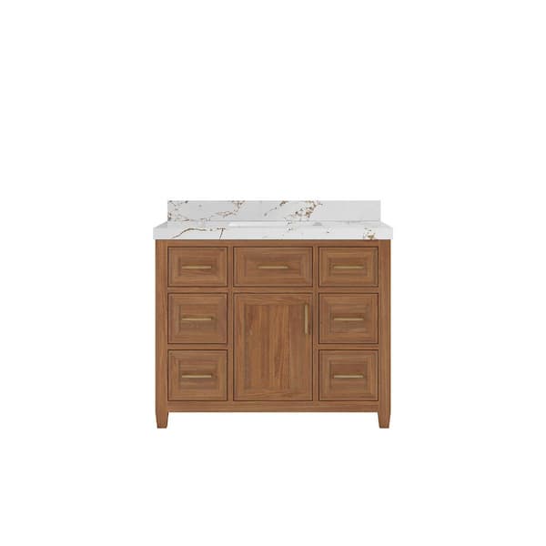 Santa Monica 42 in. W x 22 in. D x 36 in. H Single Sink Bath Vanity in Dark Natural with 2 in. Viola Brown Top