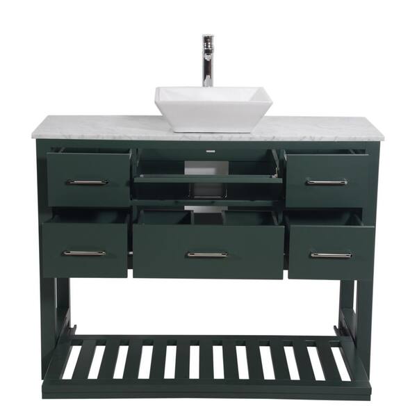 Santa Monica 48 in. W x 18 in. D x 36 in. H Bath Vanity in Dark Green with Marble Top in White with White Basin
