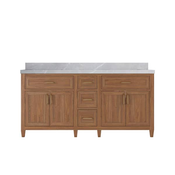 Santa Monica 72 in. W x 22 in. D x 36 in. H Double Sink Bath Vanity in Dark Natural with 2 in. Pearl Quartz Top