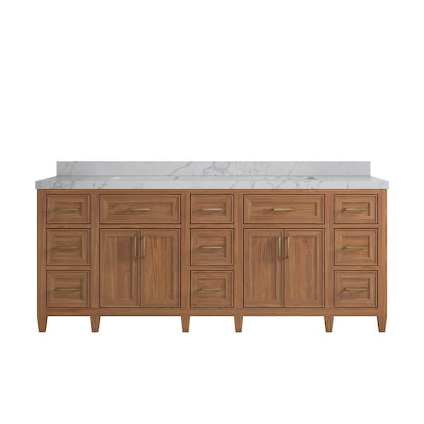 Santa Monica 84 in. W x 22 in. D x 36 in. H Double Sink Bath Vanity in Dark Natural with 2 in. Venatino Quartz Top