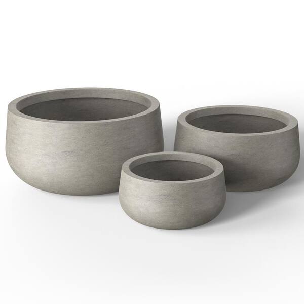 11.4in.,15in.,19in. Dia Light Gray Extra Large Tall Round Concrete Plant Pot/Planter for Indoor and Outdoor(Set of 3)