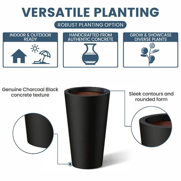 12 in. Large Charcoal Black (Premium Inner) Concrete Round Planter / Pot with Drainage Holes