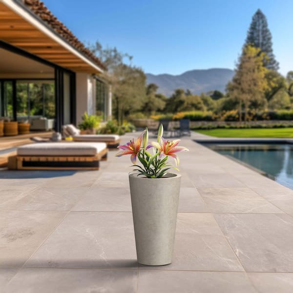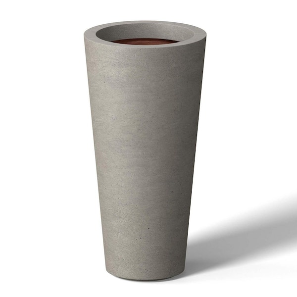 12 in. Large Light Gray (Enhanced Interior) Concrete Round Planter / Pot with Drainage Holes