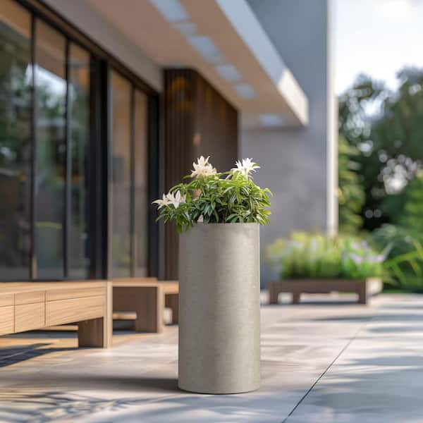 14.5 in. Large Light Gray Concrete Round Planter / Pot with Drainage Holes