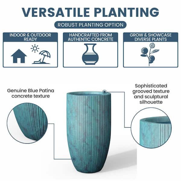 14 in. Large Blue Patina (Premium Inner) Concrete Round Planter / Pot with Drainage Holes