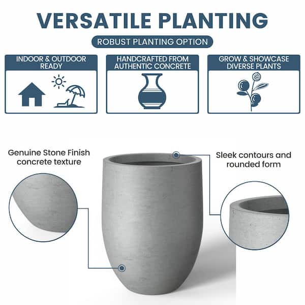 17 in. Large Natural Gray (Enhanced Interior) Concrete Round Planter / Pot with Drainage Holes