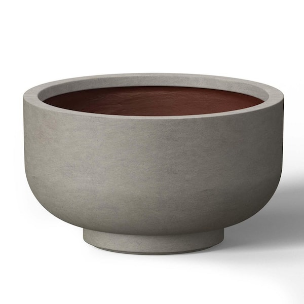 18 in. Large Light Gray (Enhanced Interior) Concrete Round Planter / Pot with Drainage Holes