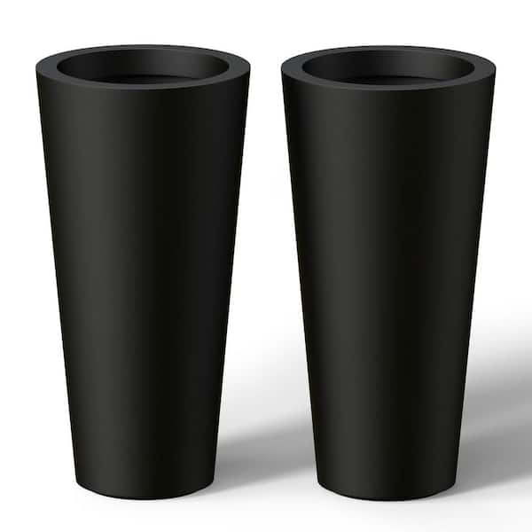 8 in. Medium Charcoal Black Concrete Round planter / Pot with drainage holes (Set of 2)