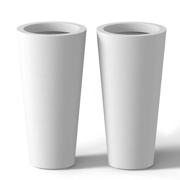 8 in. Medium Crisp White Concrete Round planter / Pot with drainage holes (Set of 2)