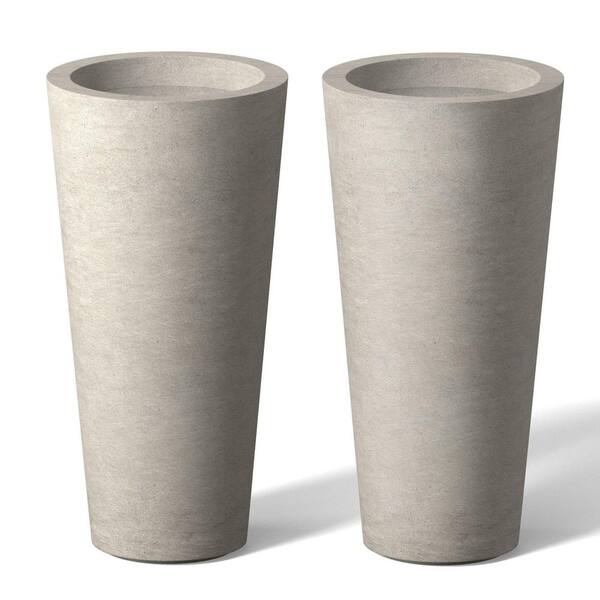 8 in. Medium Light Gray (Enhanced Interior) Concrete Round Planter / Pot with Drainage Holes (Set of 2)