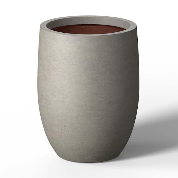 9.5 in. Medium Light Gray (Enhanced Interior) Concrete Round Planter / Pot with Drainage Holes