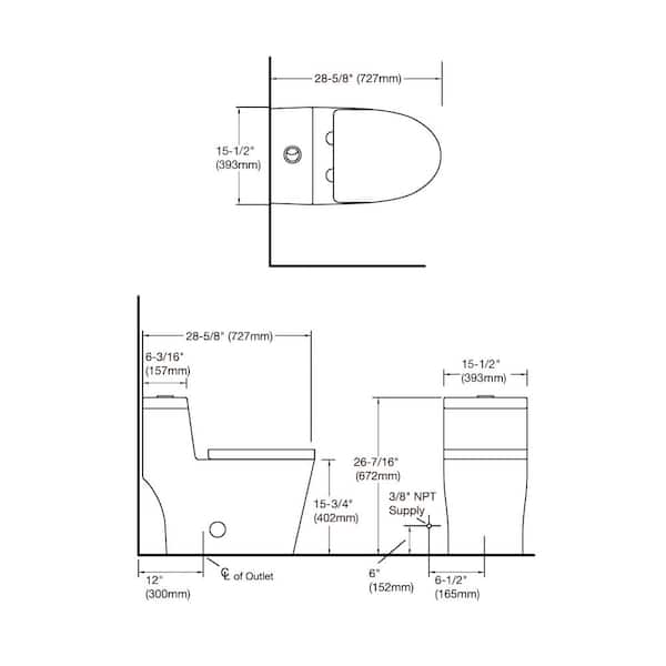 12 in. Rough-In 1-piece 1.6/1.1 GPF Dual Flush High Efficiency Elongated Toilet in White, Seat Included